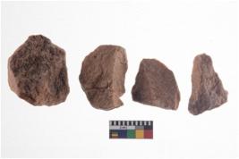 | Description / विवरण | A Sub rectangular flake with wavy thick distal end and broken functional top. It reined pebbly cortex on one side and irregular thin edge on the other |
