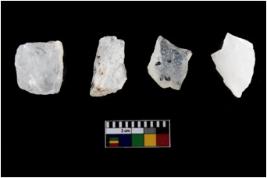 | Description / विवरण | Four utilised worked cores with sharp edges. Flakes removed from almost all the sides. Some are tapering at one end. |