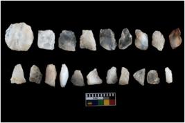 | Description / विवरण | There are n-20 of intact flake cores, out of them 15 are made up of Quartz and 5 are of chalcedony. Some of them have bulge of percussion and some are flat flakes. |