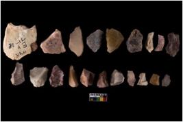| Description / विवरण | There are n-20 of intact flake cores made up of chert. Some of them have bulge of percussion and some are flat flakes. |