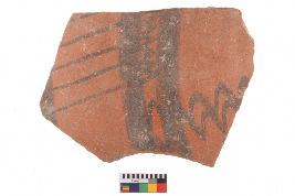 | Description / विवरण | Specimen of potsherd with decorative geometric painting, Type Black on Red Ware . |
