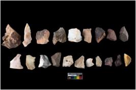 | Description / विवरण | There are n-20 of intact flake cores, out of them 2 are made up of quartz and 18 are of chert. Some of them have bulge of percussion and some are flat flakes. |