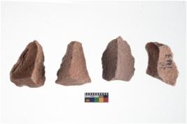 | Description / विवरण | A Sub rectangular flake with wavy thick distal end and broken functional top. It reined pebbly cortex on one side and irregular thin edge on the other |