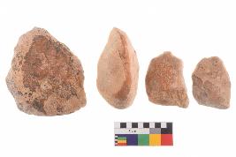 | Description / विवरण | There are n-4 of utilized flake cores. There are multidirectional irregular dominant scar pattern on both dorsal and ventral face of the cores. Some of them bulge of percussion and some are flat flake cores. |