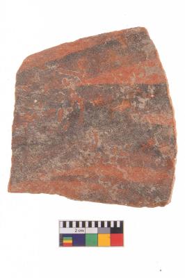 | Description / विवरण | Specimen of potsherd with decorative black pigment. |