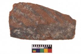 | Description / विवरण | Specimen of potsherd with decorative geometric Linear Pattern painting, Type Black on Red Ware . |