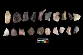 | Description / विवरण | There are n-20 of intact flake cores, out of them 1 is made up of quartz and 19 are of chert. Some of them have bulge of percussion and some are flat flakes. |