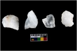 | Description / विवरण | Four utilised worked cores with sharp edges. Flakes removed from almost all the sides. Some are tapering at one end. |