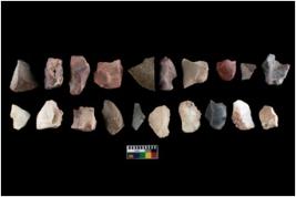 | Description / विवरण | There are n-20 of intact flake cores, out of them 1 is made up of quartz and 19 are of chert. Some of them have bulge of percussion and some are flat flakes. |