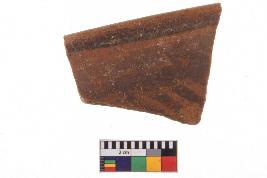 | Description / विवरण | Specimen of potsherd with decorative geometric Linear Pattern painting, Type Black on Red Ware . |