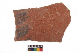 | Description / विवरण | Specimen of potsherd with decorative black pigment. |