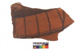 | Description / विवरण | Specimen of potsherd with decorative black pigment. |
