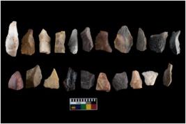 | Description / विवरण | There are n-20 of intact flake cores made up of chert. Some of them have bulge of percussion and some are flat flakes. |