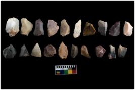 | Description / विवरण | There are n-20 of intact flake cores, out of them 2 are made up of quartz and 18 are of chert. Some of them have bulge of percussion and some are flat flakes. |