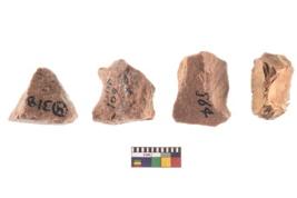 | Description / विवरण | Specimen of flake tools with prominent flaking marks. |
