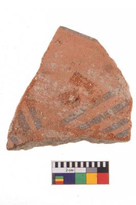 | Description / विवरण | Specimen of potsherd with decorative geometric Linear Pattern painting, Type Black on Red Ware . |