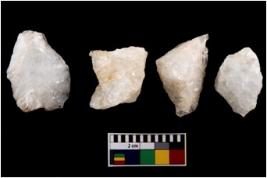| Description / विवरण | Specimen of a cores with several broad fluted marks. Some of them are tapering at one end. |
