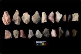 | Description / विवरण | There are n-20 of intact flake cores made up of chert. Some of them have bulge of percussion and some are flat flakes. |