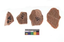 | Description / विवरण | A Sub rectangular flake with wavy thick distal end and broken functional top. It reined pebbly cortex on one side and irregular thin edge on the other |