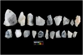 | Description / विवरण | There are n-20 of intact flake cores made up of Quartz. Some of them have bulge of percussion and some are flat flakes. |