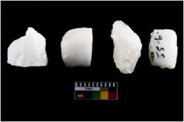 | Description / विवरण | Four utilised worked cores with sharp edges. Flakes removed from almost all the sides. Some are tapering at one end. |