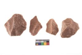 | Description / विवरण | A Sub rectangular flake with wavy thick distal end and broken functional top. It reined pebbly cortex on one side and irregular thin edge on the other |