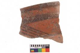 | Description / विवरण | Specimen of potsherd with decorative geometric Linear Pattern painting, Type Black on Red Ware . |
