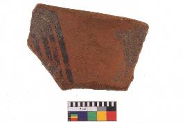 | Description / विवरण | Specimen of black on red ware with decorative black pigment. |