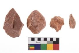 | Description / विवरण | A specimen of flake tool with prominent flaking marks. It made up of a short flakes with sides trimmed. It is rectangular in shaped |