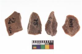 | Description / विवरण | A Sub rectangular flake with wavy thick distal end and broken functional top. It reined pebbly cortex on one side and irregular thin edge on the other |