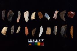 | Description / विवरण | There are n-20 of microliths, among them 3 is quartz, and 17 are of chert. Some of them are partially broken. They show variation in colour, size and shape. Some of them are blunted back blades, points, triangles, trapezes, crescent and truncated blades. |