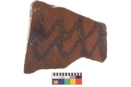 | Description / विवरण | Specimen of black on red ware with decorative black pigment. zigzag pattern |