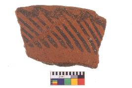 | Description / विवरण | Specimen of black on red ware with decorative black pigment. |
