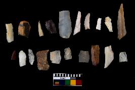 | Description / विवरण | There are n-20 of microliths, among them 13 are quartz, and 7 are of chert. Some of them are partially broken. They show variation in colour, size and shape. Some of them are blunted back blades, points, triangles, trapezes, crescent and truncated blades. |