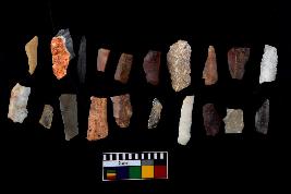 | Description / विवरण | There are n-20 of microliths, among them 3 are quartz, and 17 are of chert. Some of them are partially broken. They show variation in colour, size and shape. Some of them are blunted back blades, points, triangles, trapezes, crescent and truncated blades. |