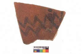 | Description / विवरण | Specimen of black on red ware with decorative geometric zigzag Pattern painting. |