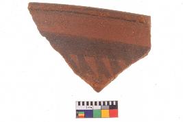 | Description / विवरण | Specimen of black on red ware with decorative geometric Linear Pattern painting. |