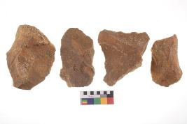 | Description / विवरण | There are n-4 of utilized flake cores. There are multidirectional irregular dominant scar pattern on both dorsal and ventral face of the cores. Some of them bulge of percussion and some are flat flake cores. |
