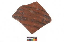 | Description / विवरण | Specimen of black on red ware with decorative black pigment. |