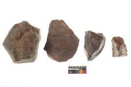 | Description / विवरण | There are n-4 of utilized flake cores. There are multidirectional irregular dominant scar pattern on both dorsal and ventral face of the cores. Some of them bulge of percussion and some are flat flake cores. |