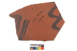 | Description / विवरण | Specimen of black on red ware with decorative geometric Linear Pattern painting. |