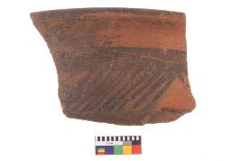 | Description / विवरण | Specimen of black on red ware with decorative geometric Linear Pattern painting. |