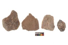 | Description / विवरण | There are n-4 of utilized flake cores. There are multidirectional irregular dominant scar pattern on both dorsal and ventral face of the cores. Some of them bulge of percussion and some are flat flake cores. |