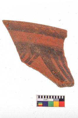 | Description / विवरण | Specimen of black on red ware with decorative geometric Linear Pattern painting. |