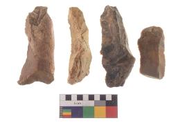 | Description / विवरण | There are n-4 of utilized flake cores. There are multidirectional irregular dominant scar pattern on both dorsal and ventral face of the cores. Some of them bulge of percussion and some are flat flake cores. |