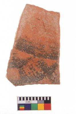 | Description / विवरण | Specimen of black on red ware with decorative black pigment. |