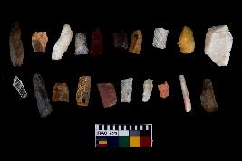 | Description / विवरण | There are n-20 of microliths, among them 6 are quartz, and 14 are of chert. Some of them are partially broken. They show variation in colour, size and shape. Some of them are blunted back blades, points, triangles, trapezes, crescent and truncated blades. |