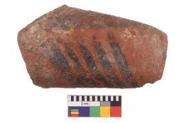 | Description / विवरण | Specimen of black on red ware with decorative geometric Linear Pattern painting. |
