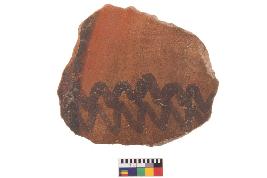| Description / विवरण | Specimen of black on red ware with decorative geometric zigzag Pattern painting. |