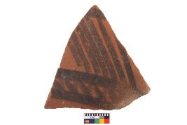 | Description / विवरण | Specimen of black on red ware with decorative geometric Linear Pattern painting. |